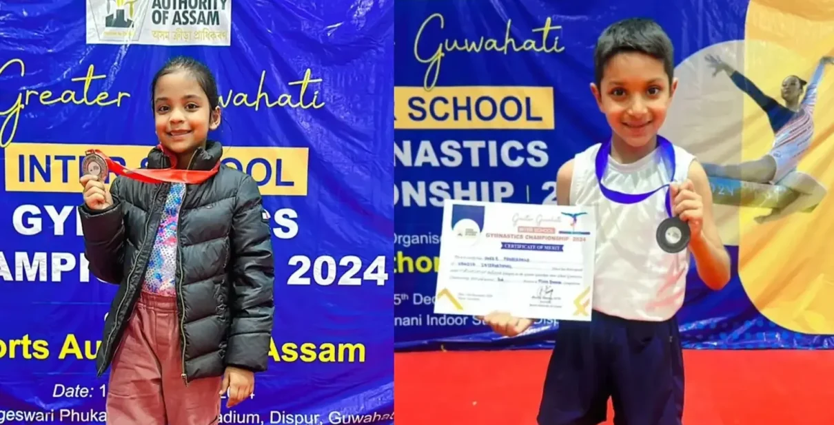 Vandyans Parshvii Agarwalaa and Dheer Parasramka of Grade II A secured 2nd and 3rd position respectively in the Floor Event at The Inter School Gymnastics Championship 2024 held on 15th of December, 2024 at Bhogeswari Phukanani Indoor Stadium, Guwahati. The event was organised by The Sports Authority of Assam.